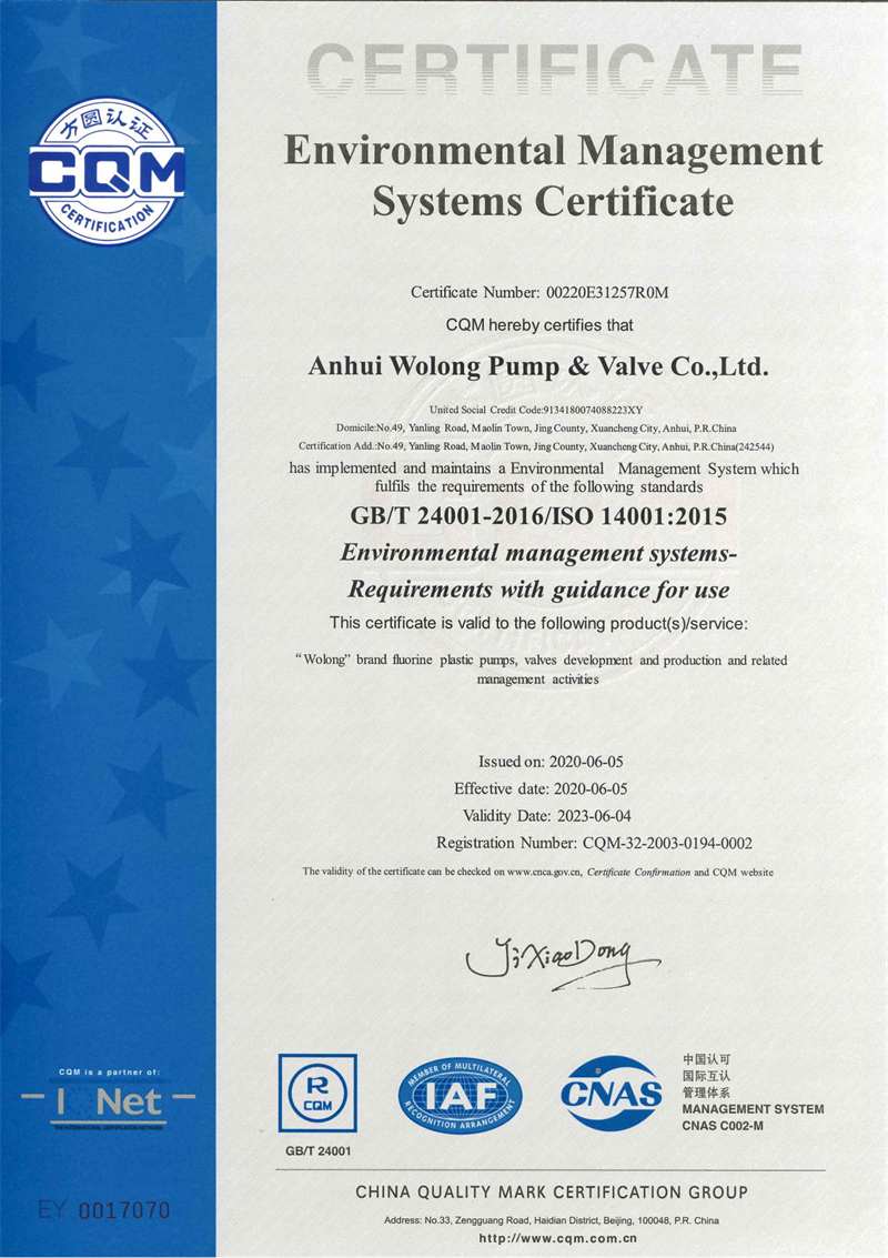 安徽臥龍泵閥股份有限公司:氟塑料泵閥產品生產和研發專家